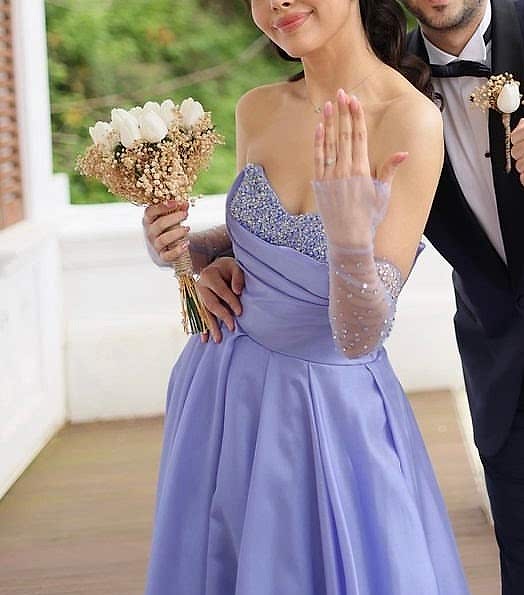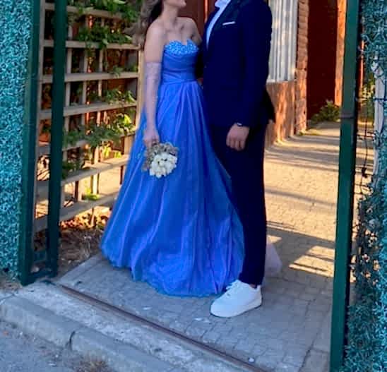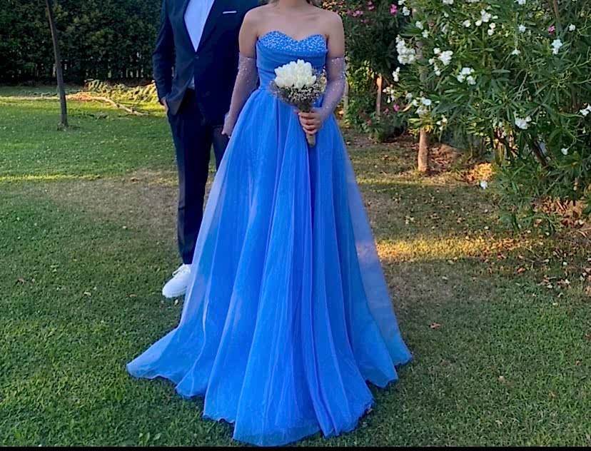 Nişantaşı Ömürınn mağazasından satın alınmıştır.Kendi nişanımda bir kez giydim.Eldivenli taş detaylı kraliyet mavisi elbise