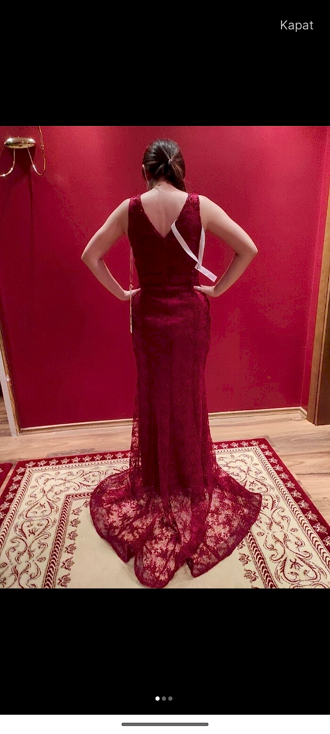 Elbise aslında bordo seçeneklerde olmadığı için kırmızı seçtim. Sadece evde nişanimda giydim. 36 bedenim fakat kalıbı dar olduğu için 38 aldım. Boyu uzundu boydan kestirdim . Benim boyum 158 . Topuklu ayakkabıyla tam topukda bitiyor.